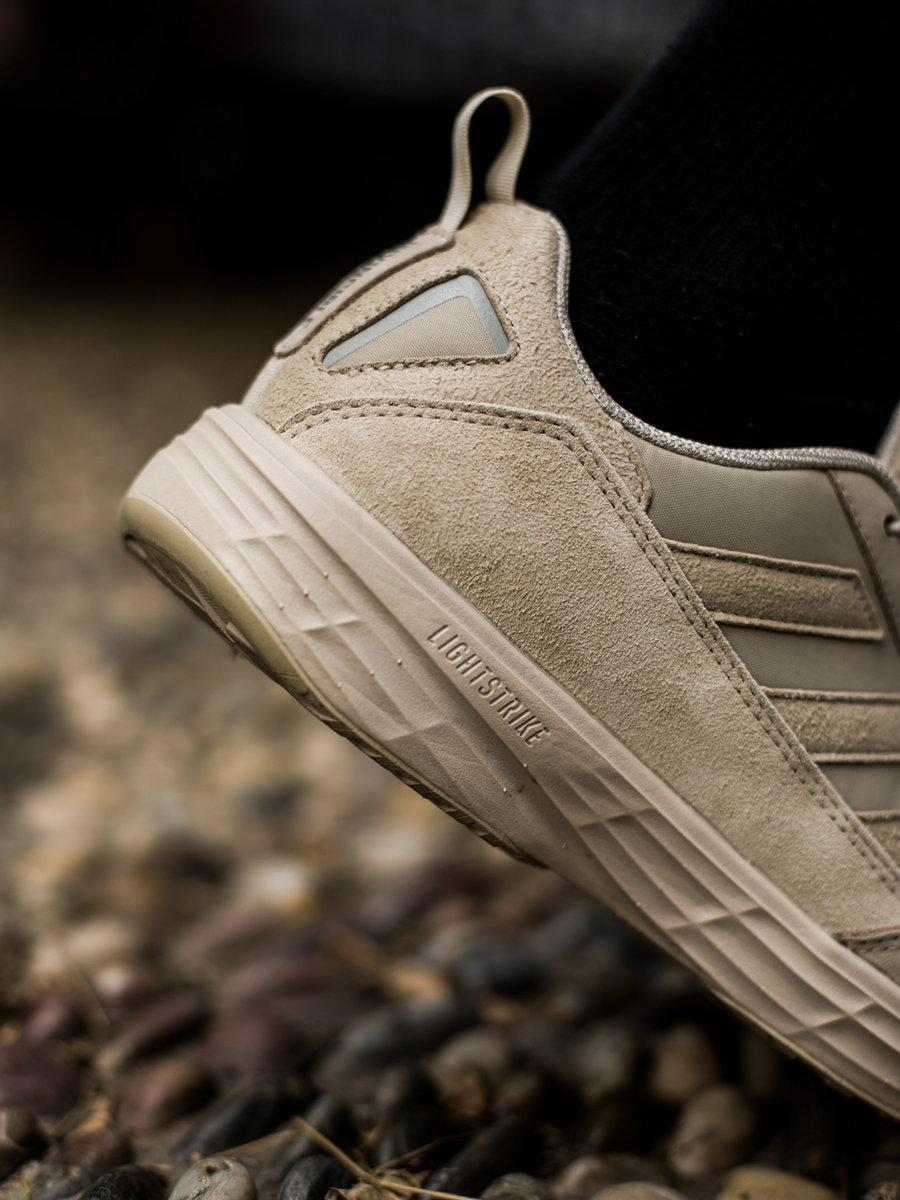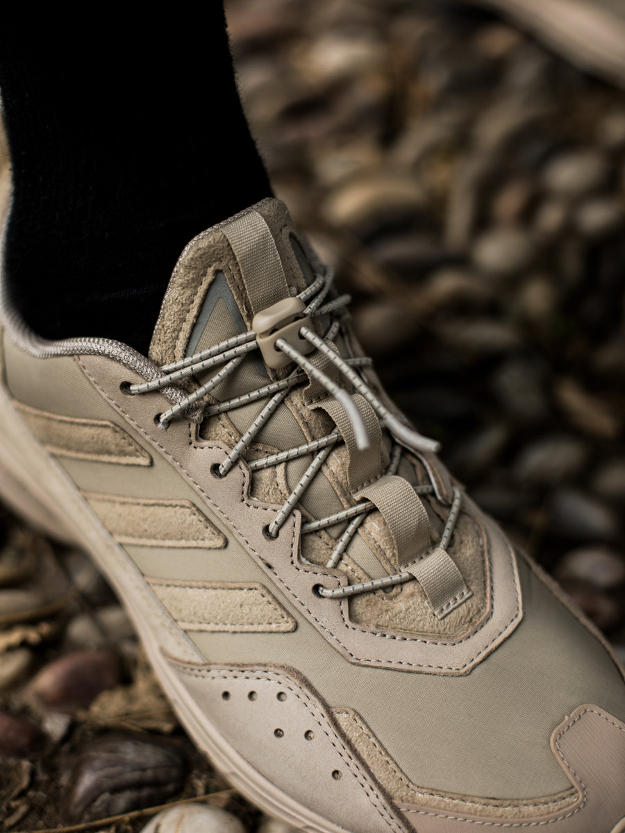 鞋带系统为锁扣抽绳设计,方便日常穿脱和快速调节松紧,呈现略带机能的干练效果。