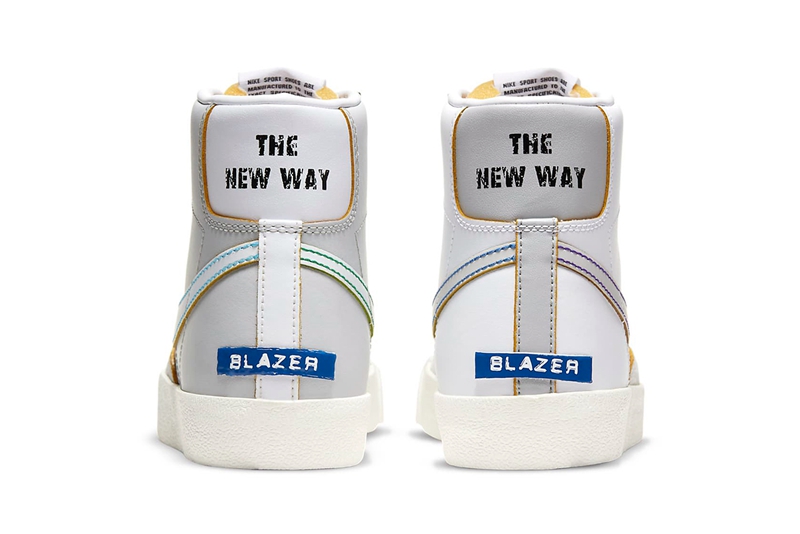 鞋后跟处用艺术风格字体点缀 "Blazer" 字样质感十足,同时将 Nike Logo 改为 "THE NEW WAY" 呈现,为这双鞋的隐藏彩蛋进行预告。