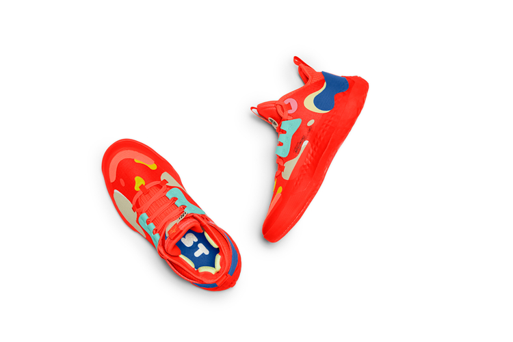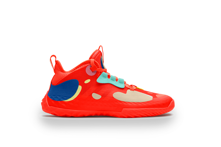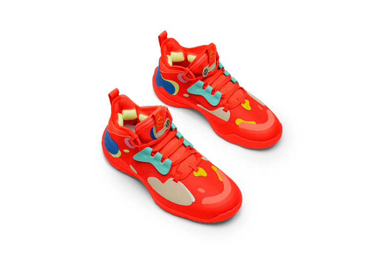 Harden Vol.5 首发配色为一袭红色呈现,同时细节处注入亮蓝、深蓝、亮黄以及杏色点缀,整体视觉效果极其亮眼。