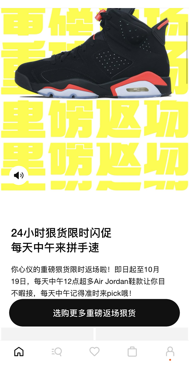 除此之外,今天 Nike APP 上线「重磅返场」活动。