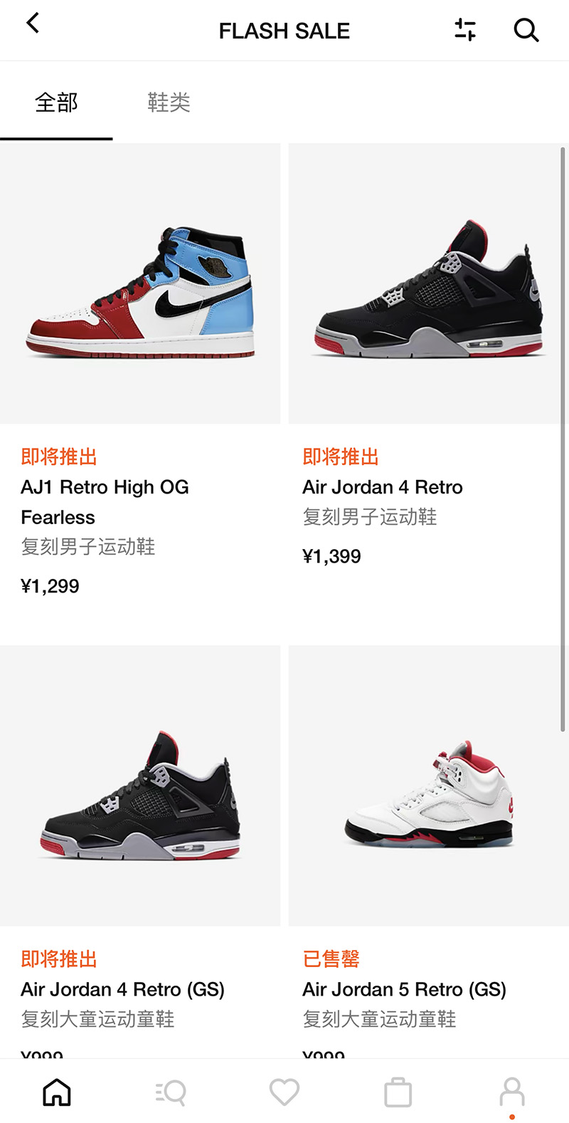 每天上架新品各不相同,今早释出的预告是警灯 Air Jordan 1 和黑红 Air Jordan 4。