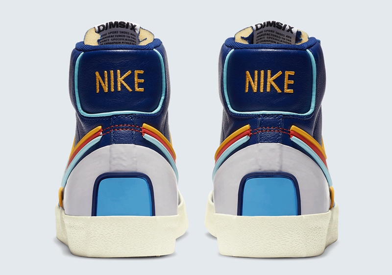 鞋身侧面 Swoosh Logo 延续至后跟处,同时辅以红色为主体,点缀黄色、蓝色线条勾勒造型,拼接的设计样式给整双鞋带来了亮眼的表现。