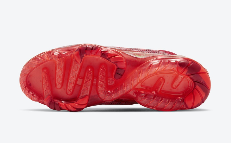 鞋身整体以通体红色打造鞋身,酷似前些年大火的 CLOT x Air VaporMax。