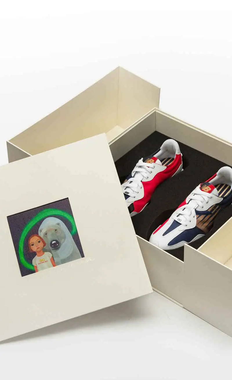 特别值得一提的是,套装鞋盒由 KIKS 采用可回收环保材质特别打造,并会随鞋附赠 NUTTSH ART 主题插画。