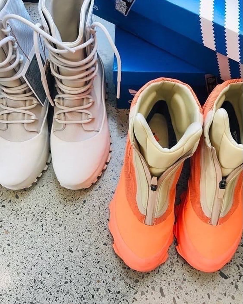 这两款鞋都是超高帮的靴子造型,其中灰色的 Yeezy 1050 V3 曾经在侃爷 Yeezy Season 3 的时装秀场上露过面。