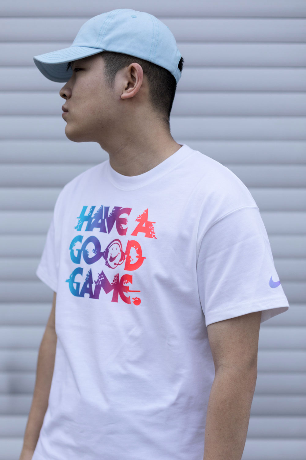 同主题短袖 T恤,将游戏中最耳熟能详的 GG (Good Game 表示祝贺与尊重) 词汇加以展开,注入 Have a Good Game 标语,彰显电竞主题。