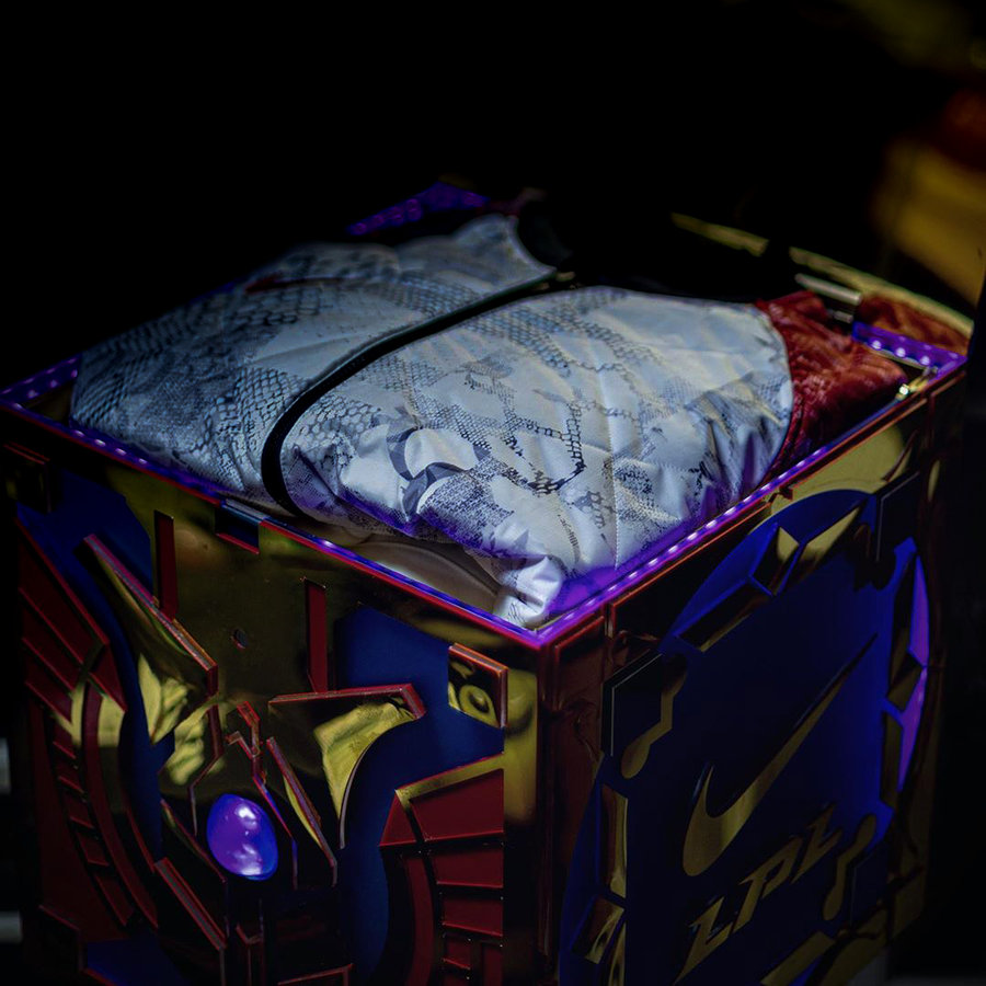 打开宝箱,包含一双英雄联盟主题的 Air Jordan 1 Zoom Air CMFT,配色灵感源于英雄联盟世界赛的冠军奖杯——召唤师奖杯,为的是向全力争取最高荣誉的巅峰选手致敬。