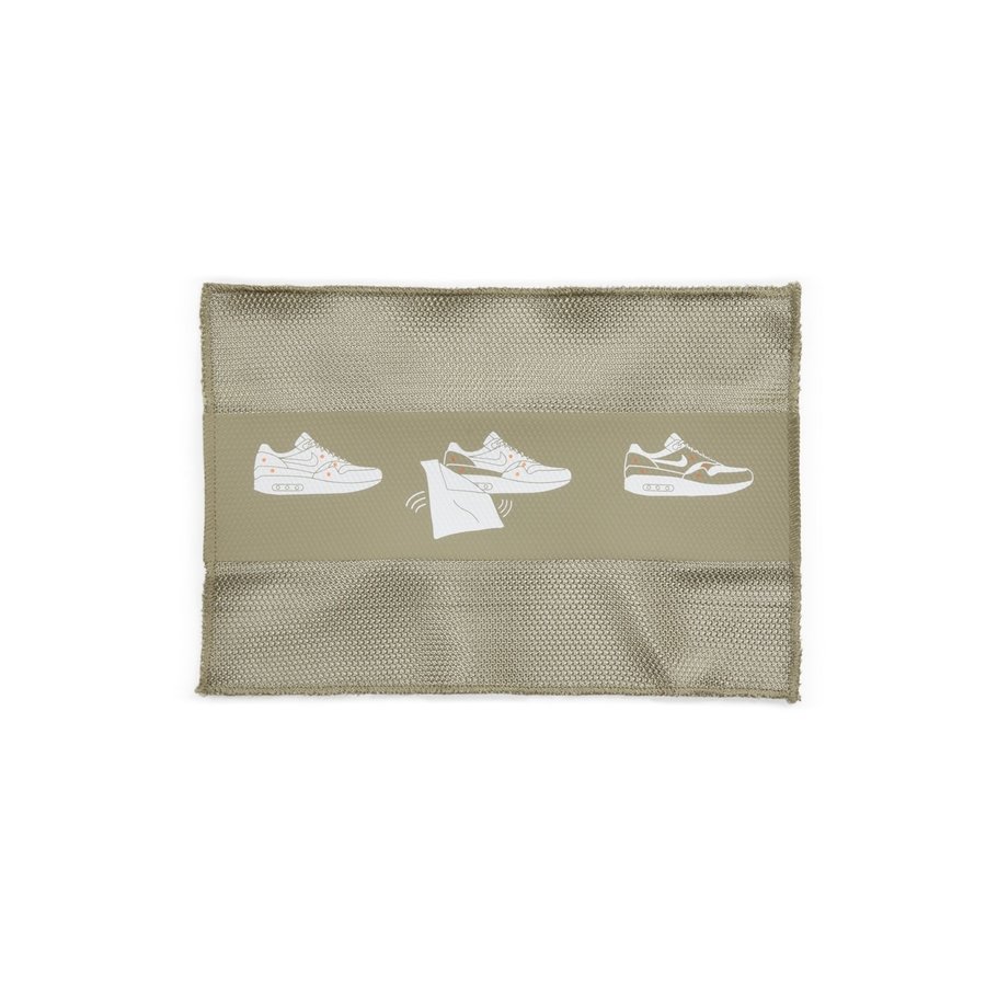 用这块布擦拭鞋面,即可令灰色部分改为卡其色,究竟是擦掉了外表涂层还是摩擦产生变色,目前还不得而知。