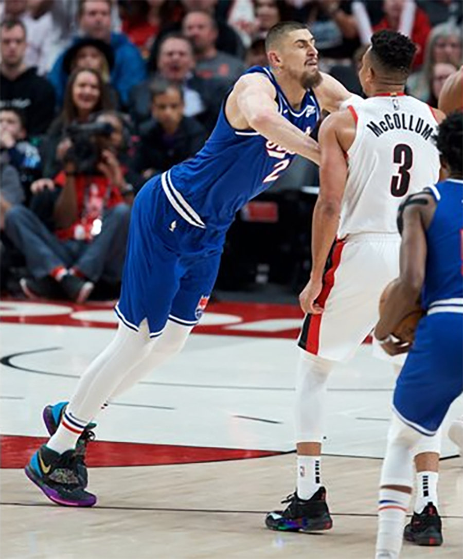 这款配色其实颇有渊源,在今年 3 月一场国王与开拓者的比赛中,CJ·迈克勒姆与对方 Alex Len 产生肢体冲突,展现出难得一见的「暴躁老哥」一面。