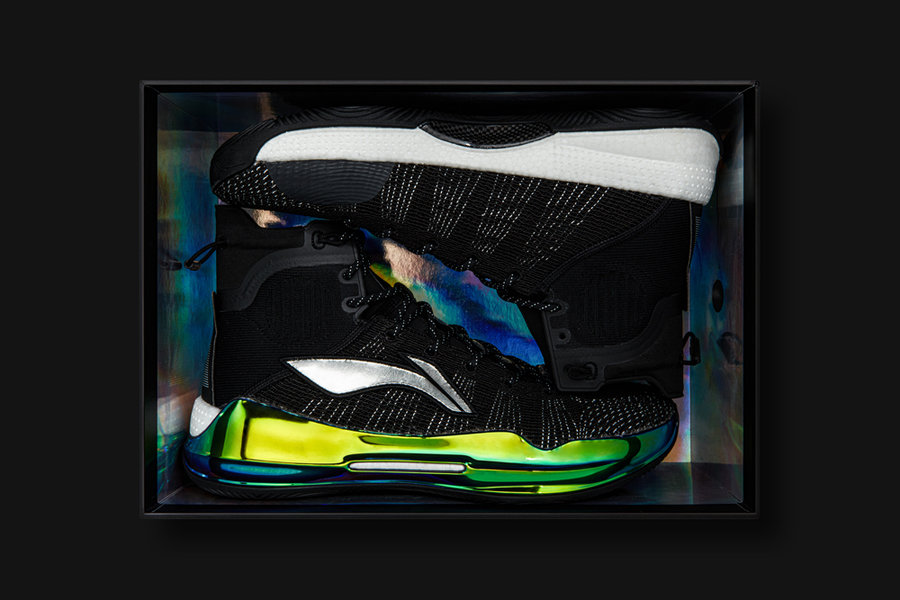 以黑夜和极光为设计灵感,鞋面以黑色为主调,银色线条穿插如同点点繁星。