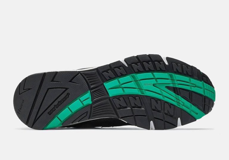 最后,黑色橡胶外底搭配绿色点缀示人,完善整双鞋的设计。