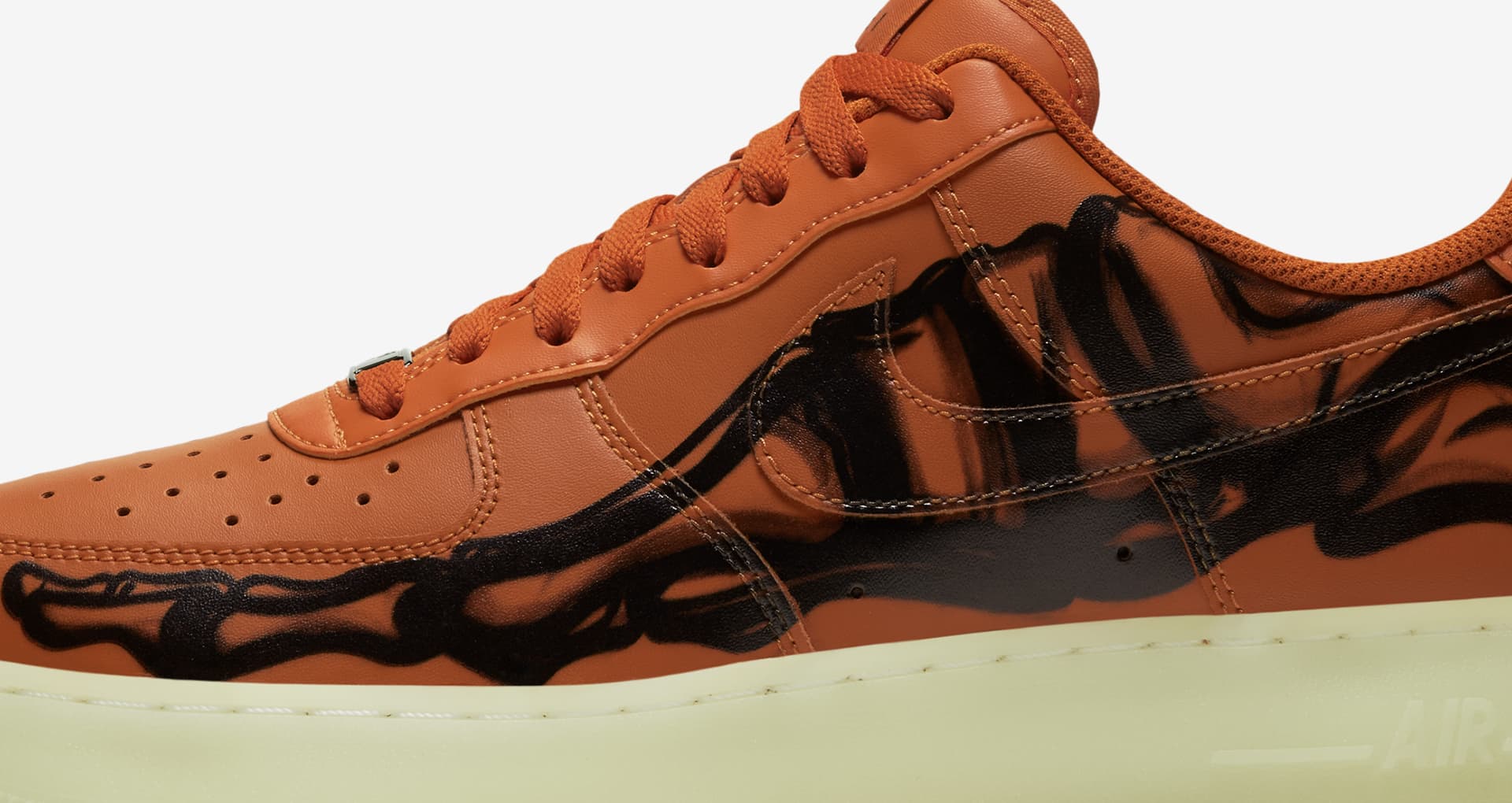 目前这双「透视脚骨」 Air Force 1 “Skeleton”已经在 Nike SNKRS APP 上架,将于 10 月 28 日上午 9 点发售,售价 ¥999 元。