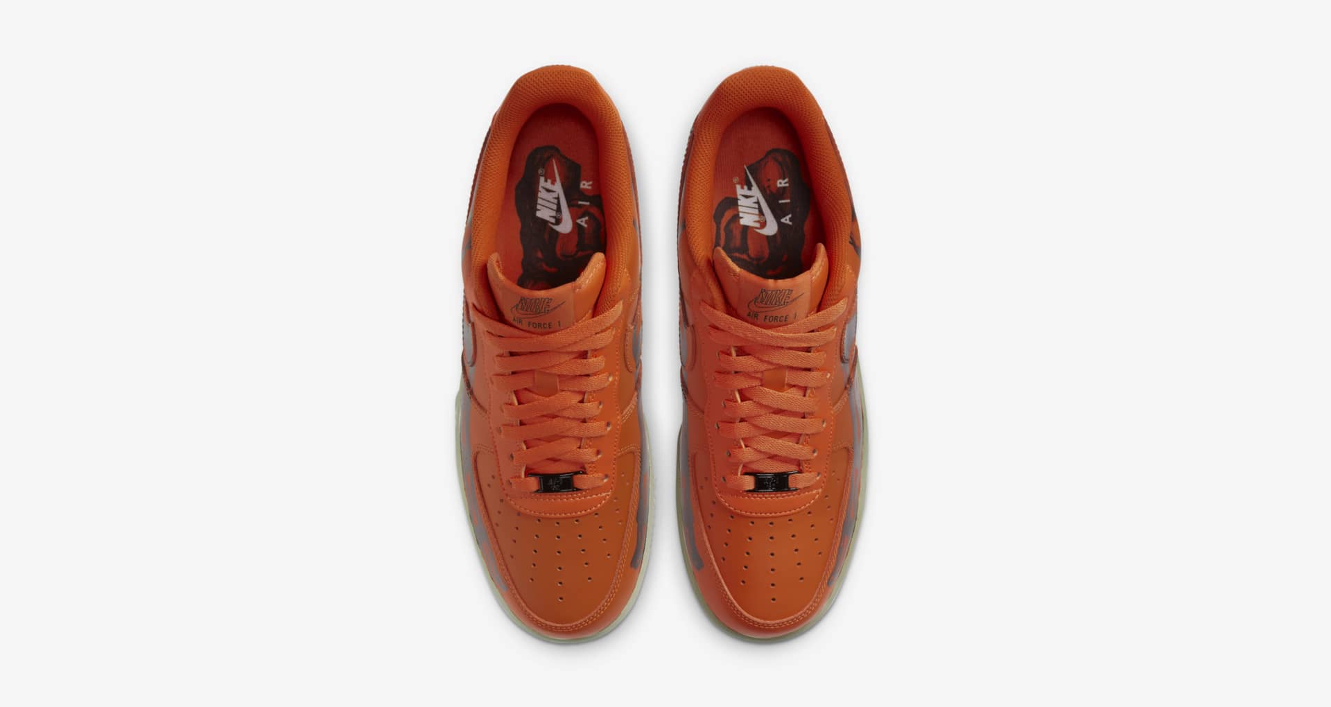 此次选以了更具有节日氛围的橙色为主基调,内外的侧身鞋面上都带有「透视脚骨」的图案,黑色线条更显阴森氛围。