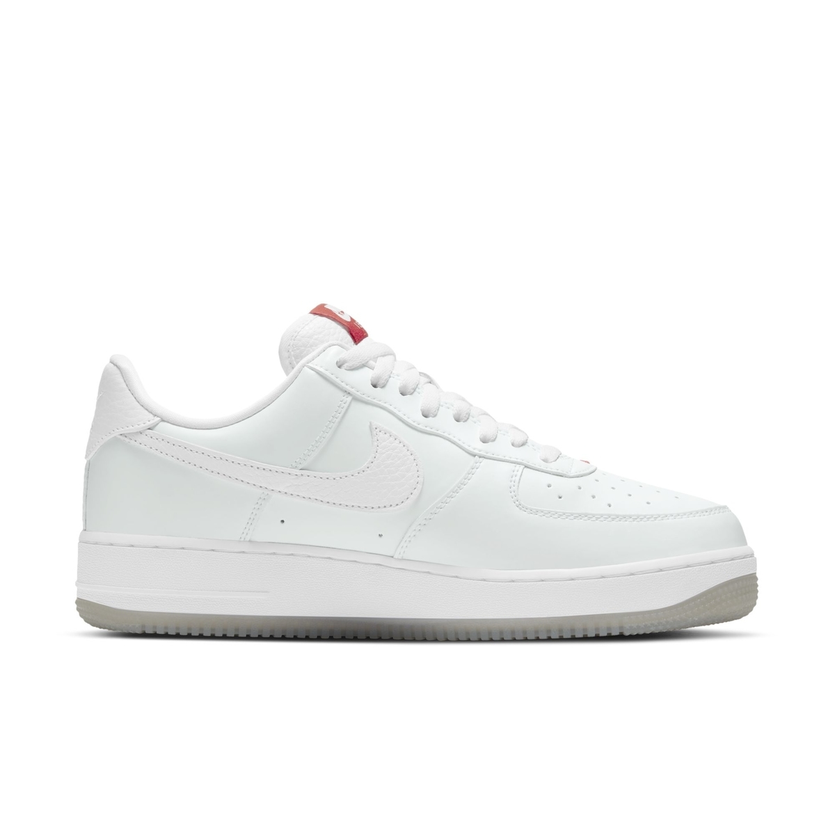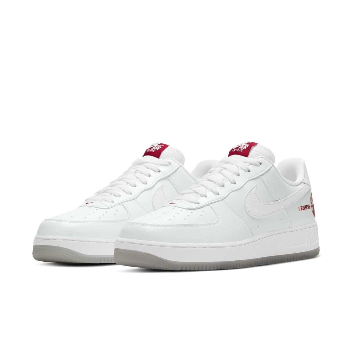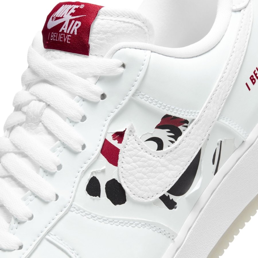 外层以纯白为主色调,后跟点缀红色 I BELIEVE 字样和达摩图案。