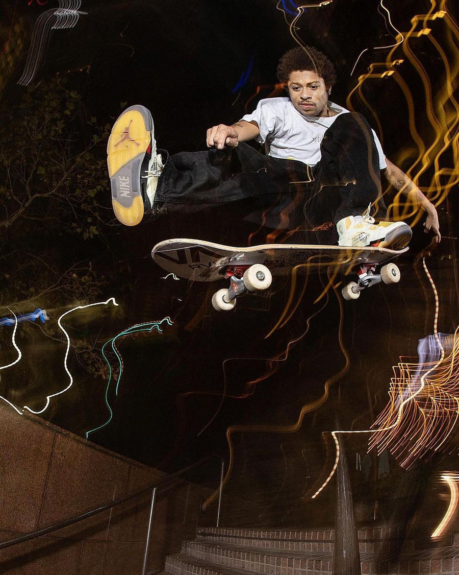 虽然是一双入手难度不小的限量联名,但海外已经有滑手穿它滑板了,让人又羡慕又心疼。
