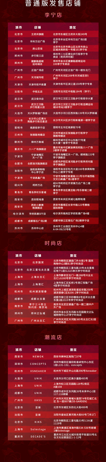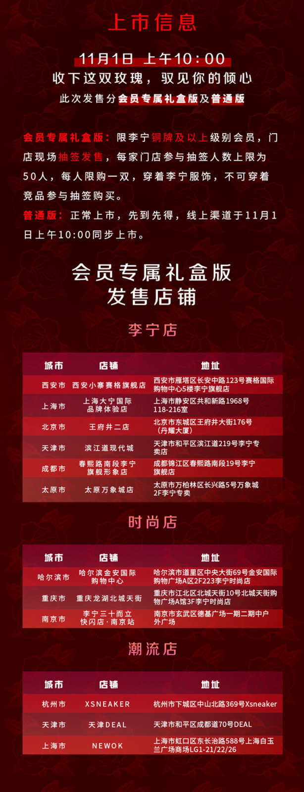发售店铺列表及发售规则参考下图,或前往李宁公众号了解详情,想买的朋友提前准备好!