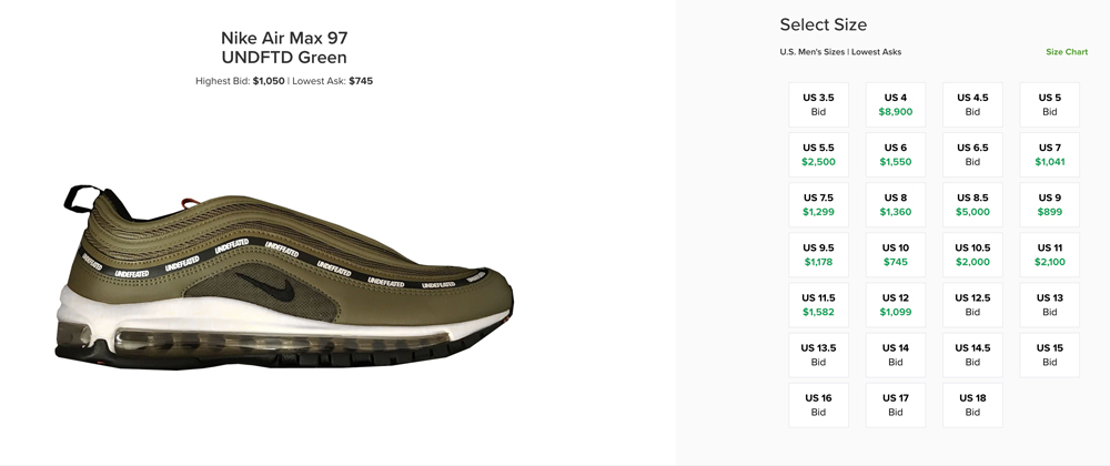 比如 2017 年的两双 UNDEFEATED x Air Max 97 在当时绝对算是天价鞋款,入手难度极高。