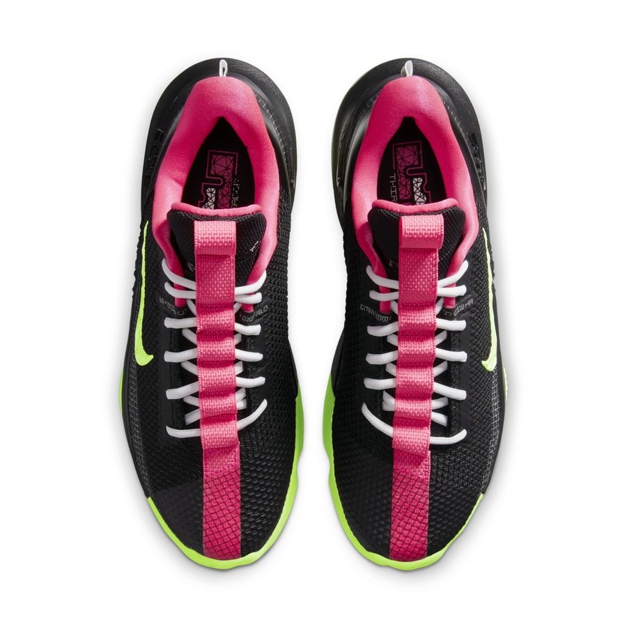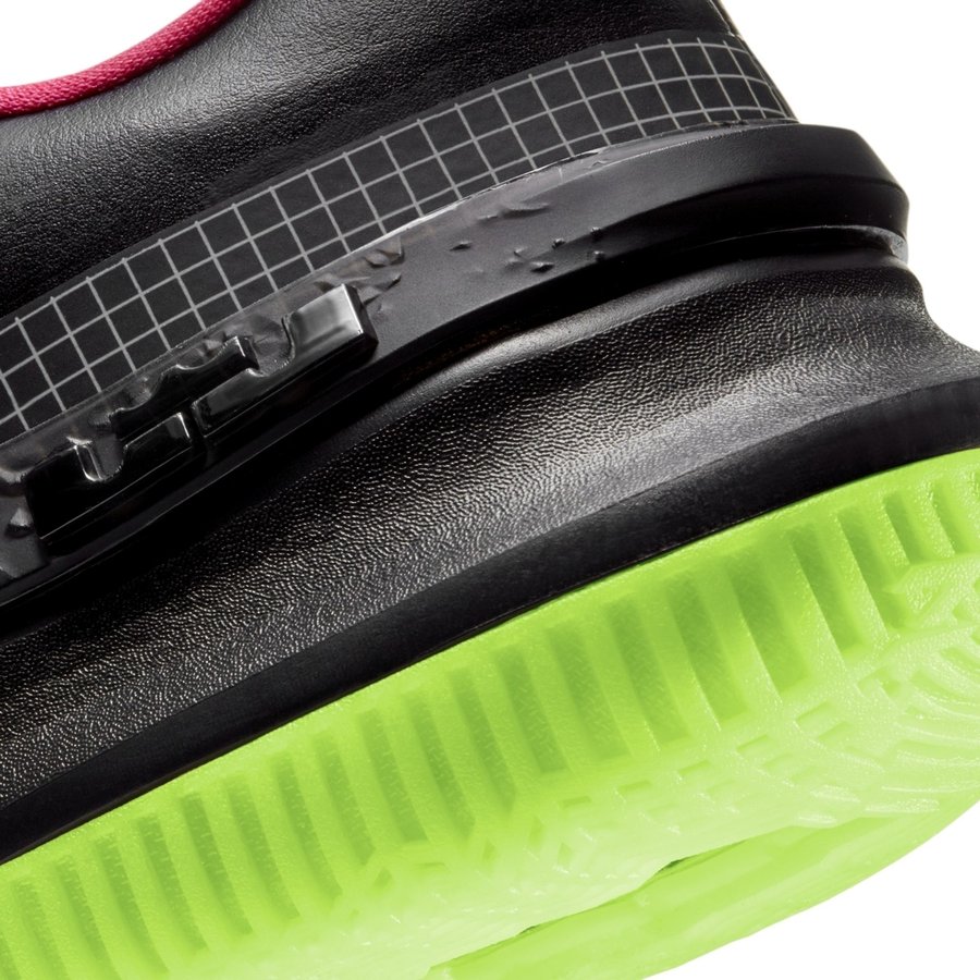 配色方案与大家最熟悉的 Air Yeezy 2 “Solar Red” 相同,黑色鞋面搭配粉红色内衬与荧光绿外底点缀。