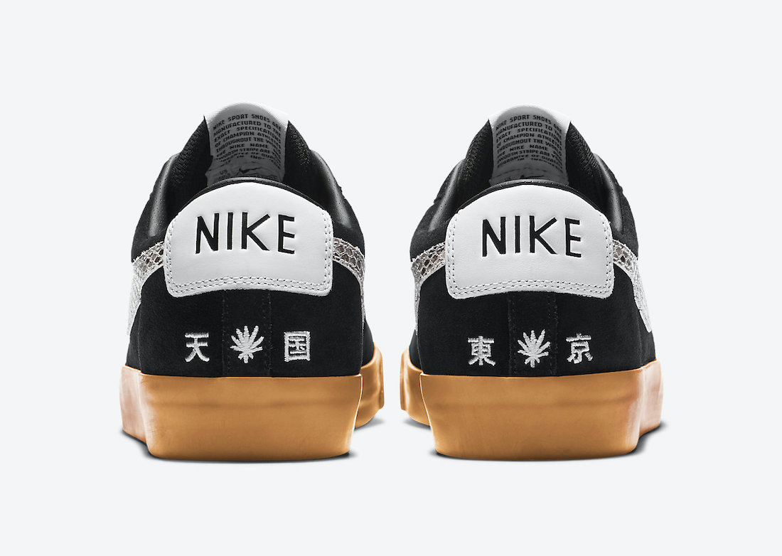 狂野蟒蛇纹理勾勒侧方 Swoosh,后跟同样是「天国」、「東京」昭示出联名身份。