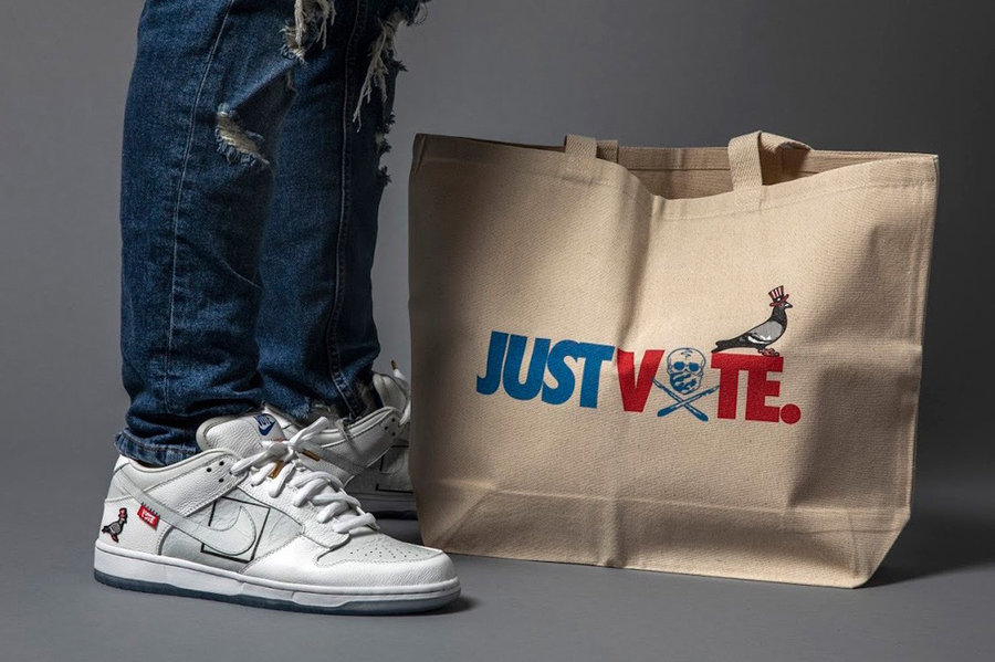 鞋底设计也与之呼应,呈现出 Just Vote 等字样。