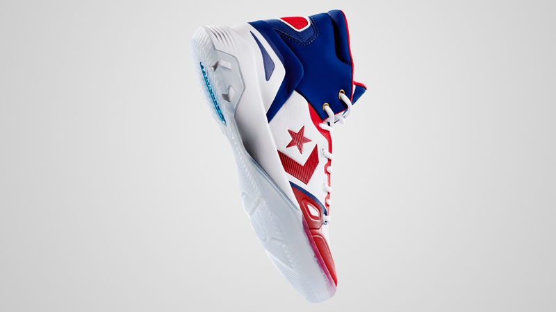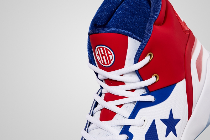 第二双为 Converse G4 整体高帮的设计,搭配经典的红白蓝三色,象征着开创和自由。
