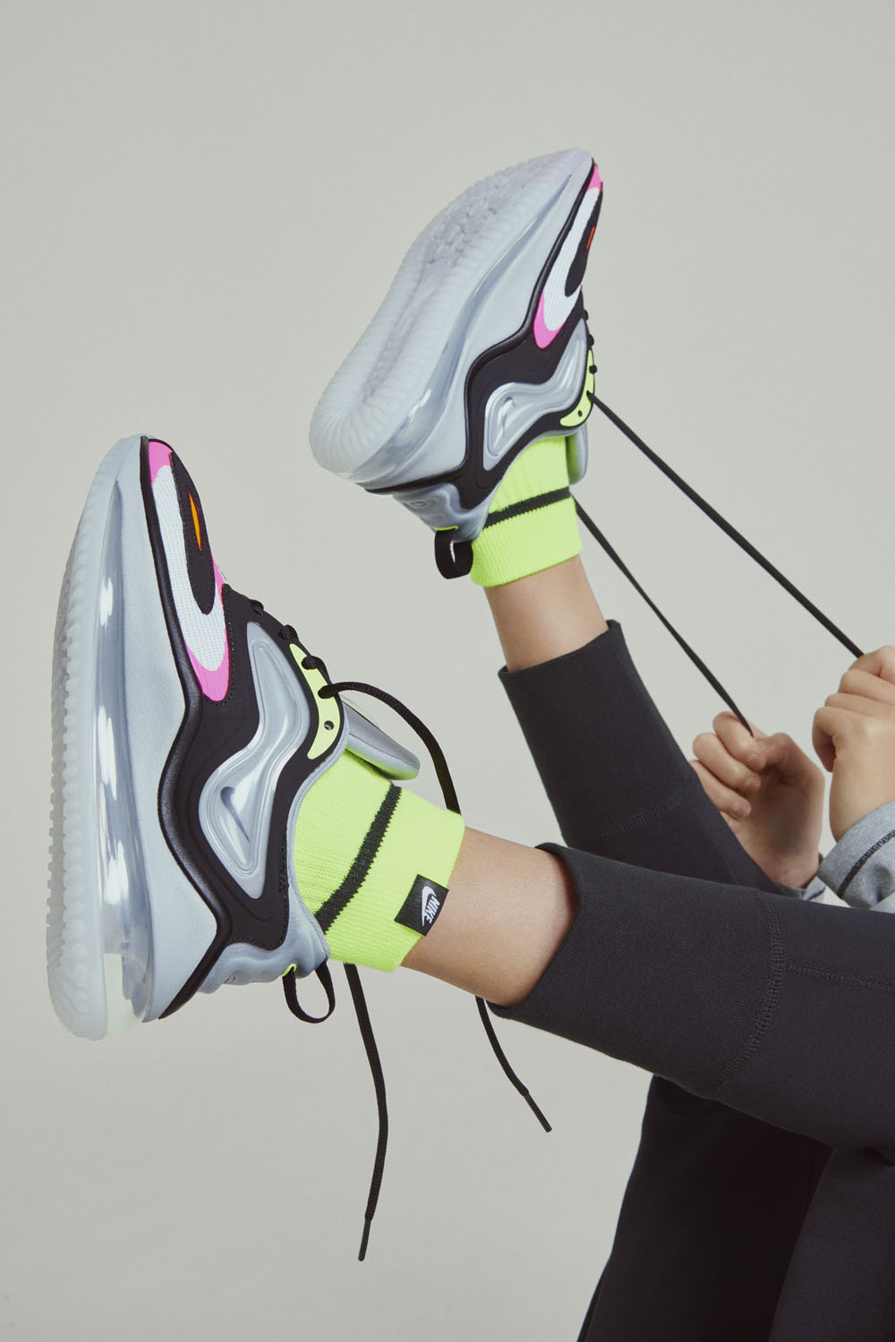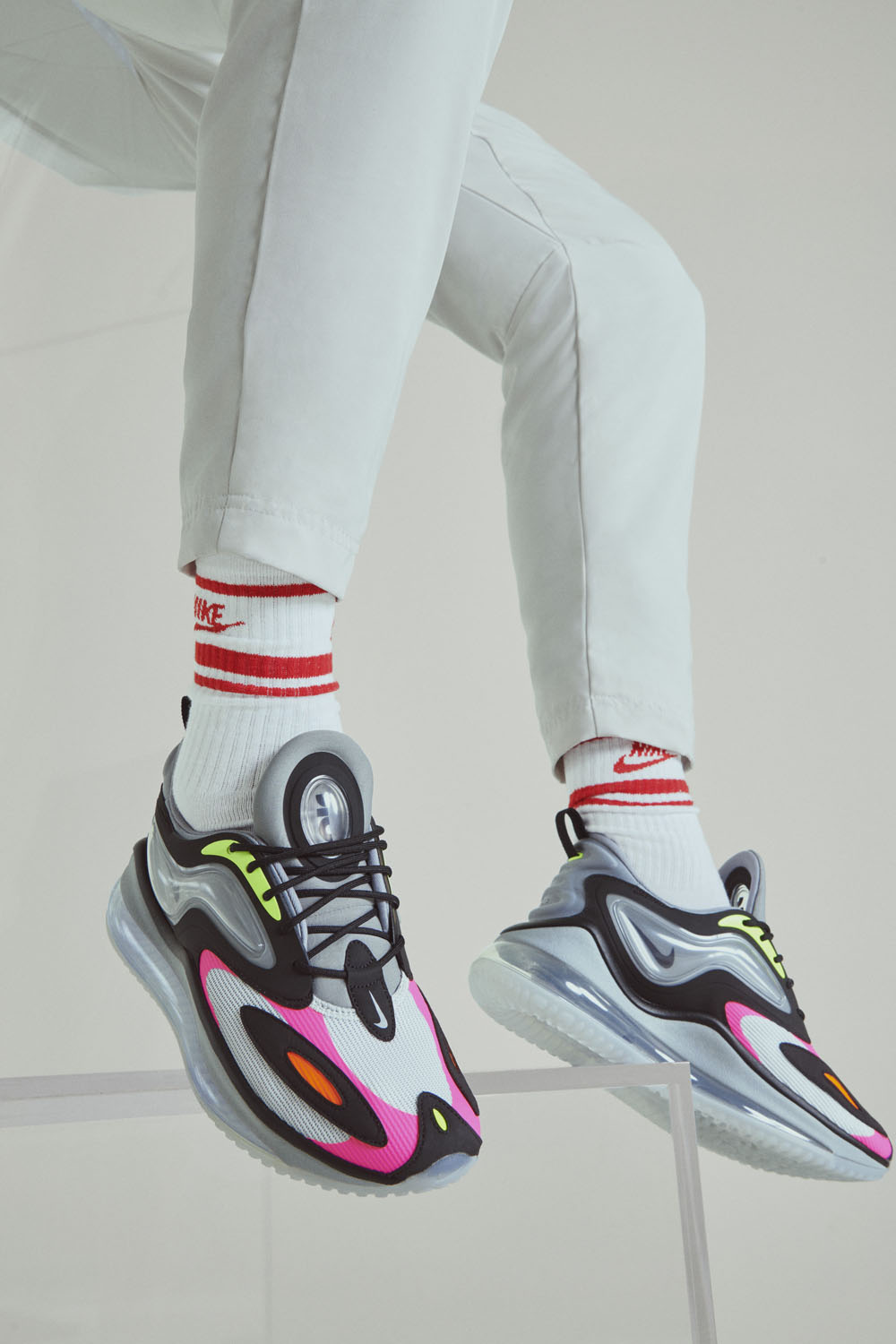 Nike Air Max Zephyr 搭载 720 气垫单元,720 是 Nike 迄今最大的 Air 气垫容量,以此提供柔软、回弹的缓震效果与舒适感受。