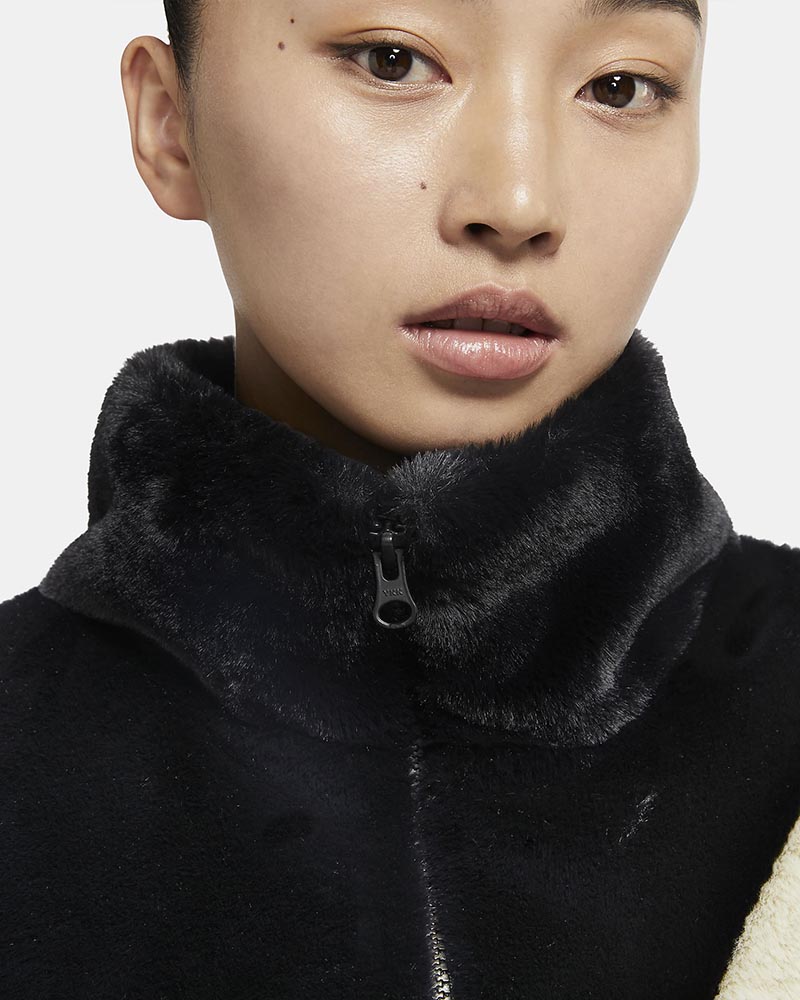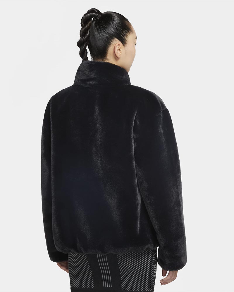 前有 AMBUSH x Nike 天价联名,后有扎染夺目的大尺寸 Big Swoosh,步入冬季 Nike Sportwear 将两者合二为一,带来人造皮草的全新女子夹克,而同期登场的大尺寸毛毯,更是相当有意思。