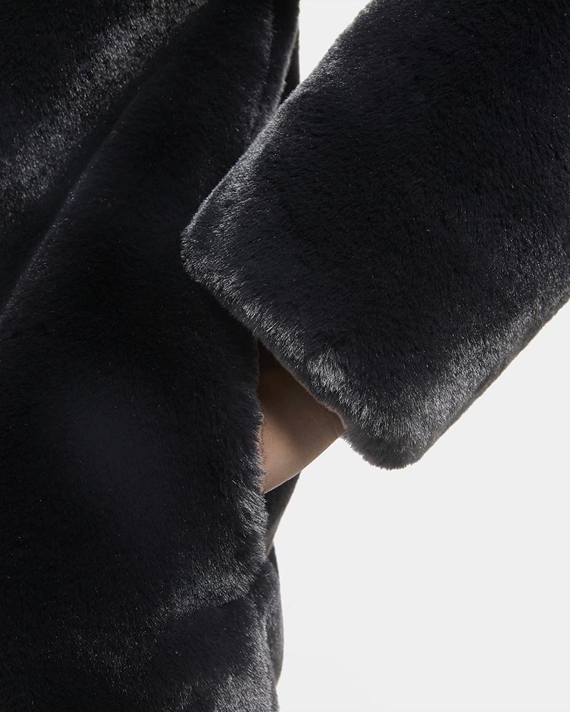 夹克采用顺滑的人造皮草呈现,触感柔软舒适,衣领与袖口都经过加厚处理,内衬还增设隐藏口袋,不仅廓形挺拔干练,更带来温暖的御寒效果。
