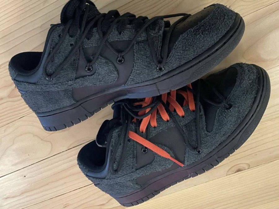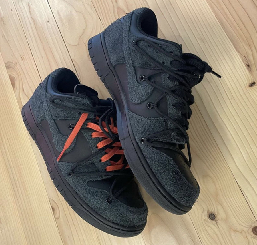 保留此前 OFF-WHITE x Dunk Low 的标志性鞋带设计,解构风格明显。
