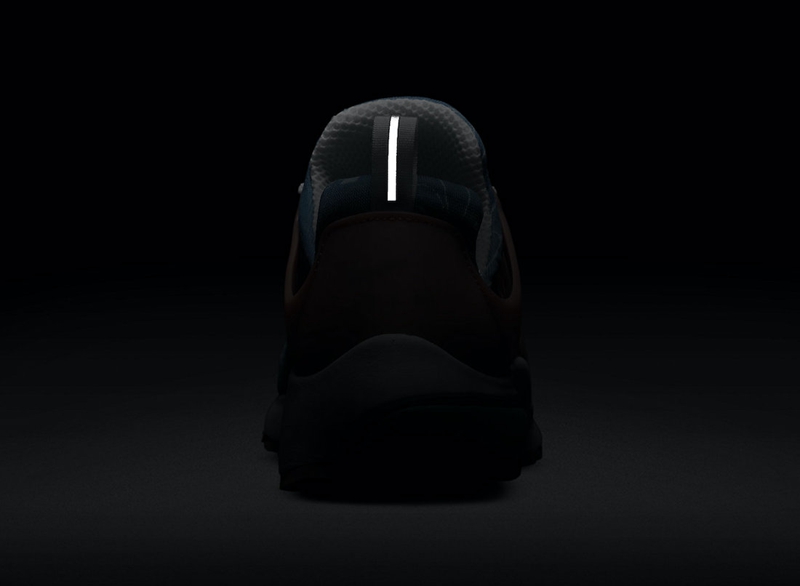 后跟的鞋提以 3M 材质妆点,在暗光环境下带来极强的视觉冲击力,完善整体设计。