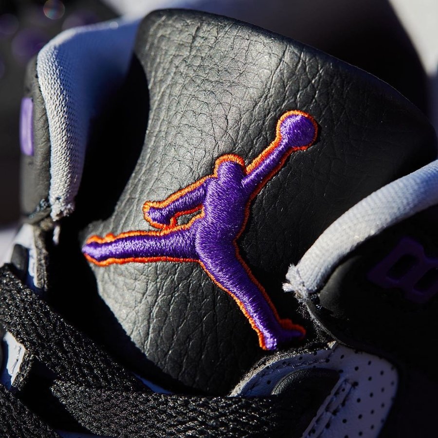 而另一大亮点则是鞋带孔、鞋舌 Jumpman Logo 以及后跟位置采用紫色妆点。