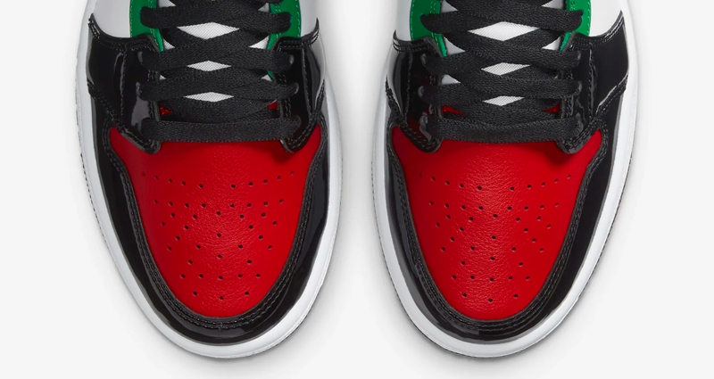 鞋身以红、绿、蓝、黑、白五种颜色的拼接呈现,层次感十足的同时也带来极强的吸睛效果。