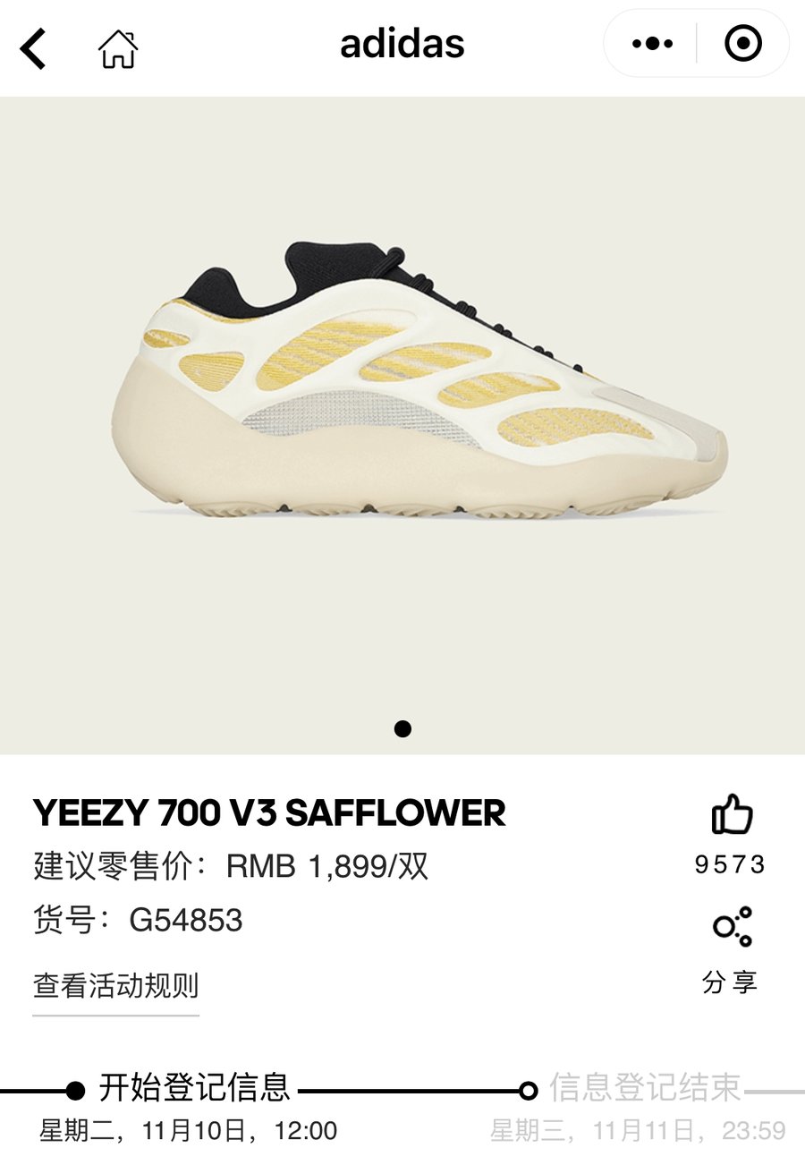目前,全新 adidas Yeezy 700 V3 “Safflower” 已在 adidas 会员中心微信小程序释出登记信息。
