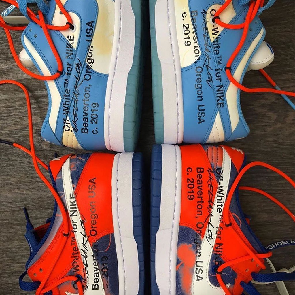 那就是携手街头涂鸦大师 Futura,打造的 OFF-WHITE x Futura x Nike Dunk Low “Bold Orange” & “Bright Blue” 两款配色。