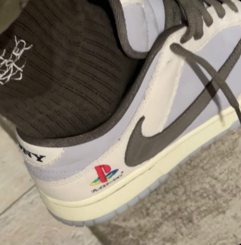后部外侧则点缀 Sony PS Logo,并且后跟顶端刺绣 SONY 标识,外底还加入 Cactus Jack 标志。