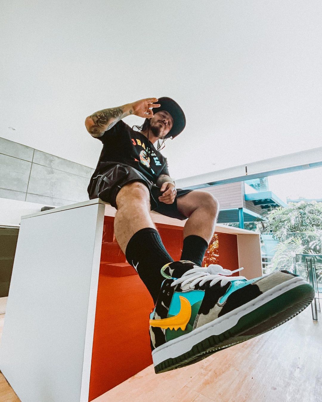 另外他还是 The Shoe Surgeon 的合作伙伴,他热衷于穿各种五彩斑斓的定制款,更愿意去亲自操刀设计。