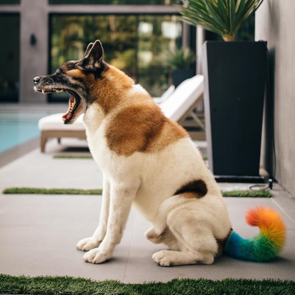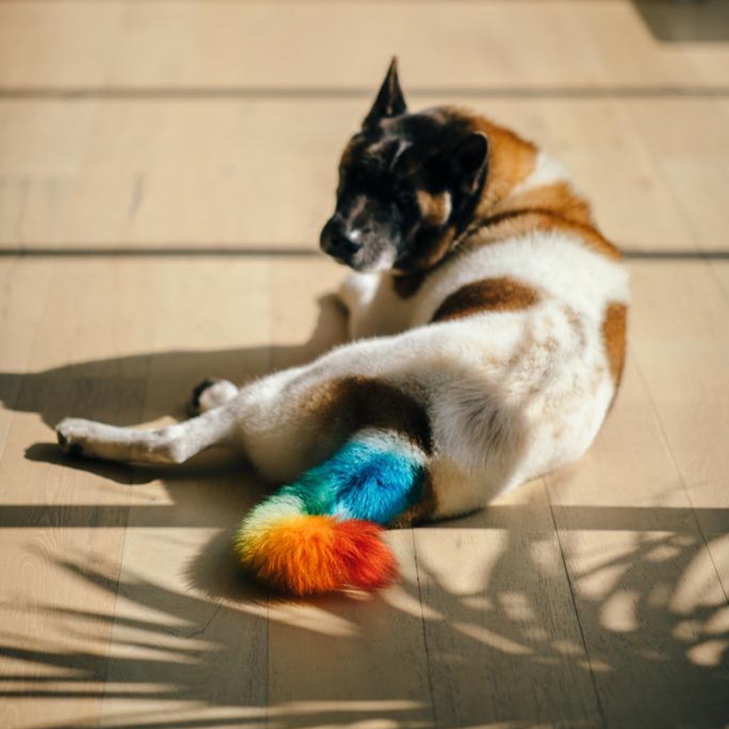而且他不仅给自己染发,还把自家狗尾巴都染了...