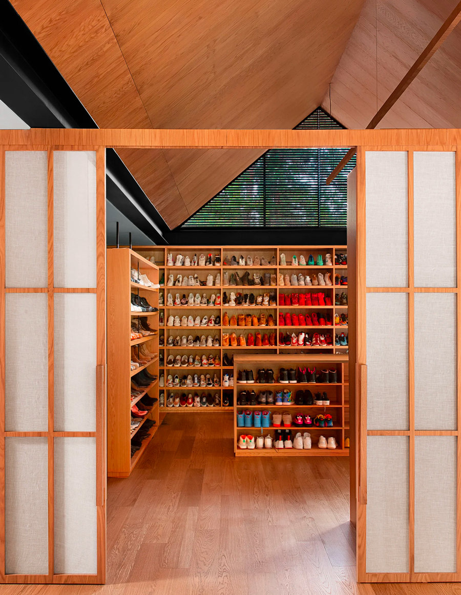 真要说现代的装饰,可能就数他那些随处可见的潮流装置与数不尽的球鞋了。