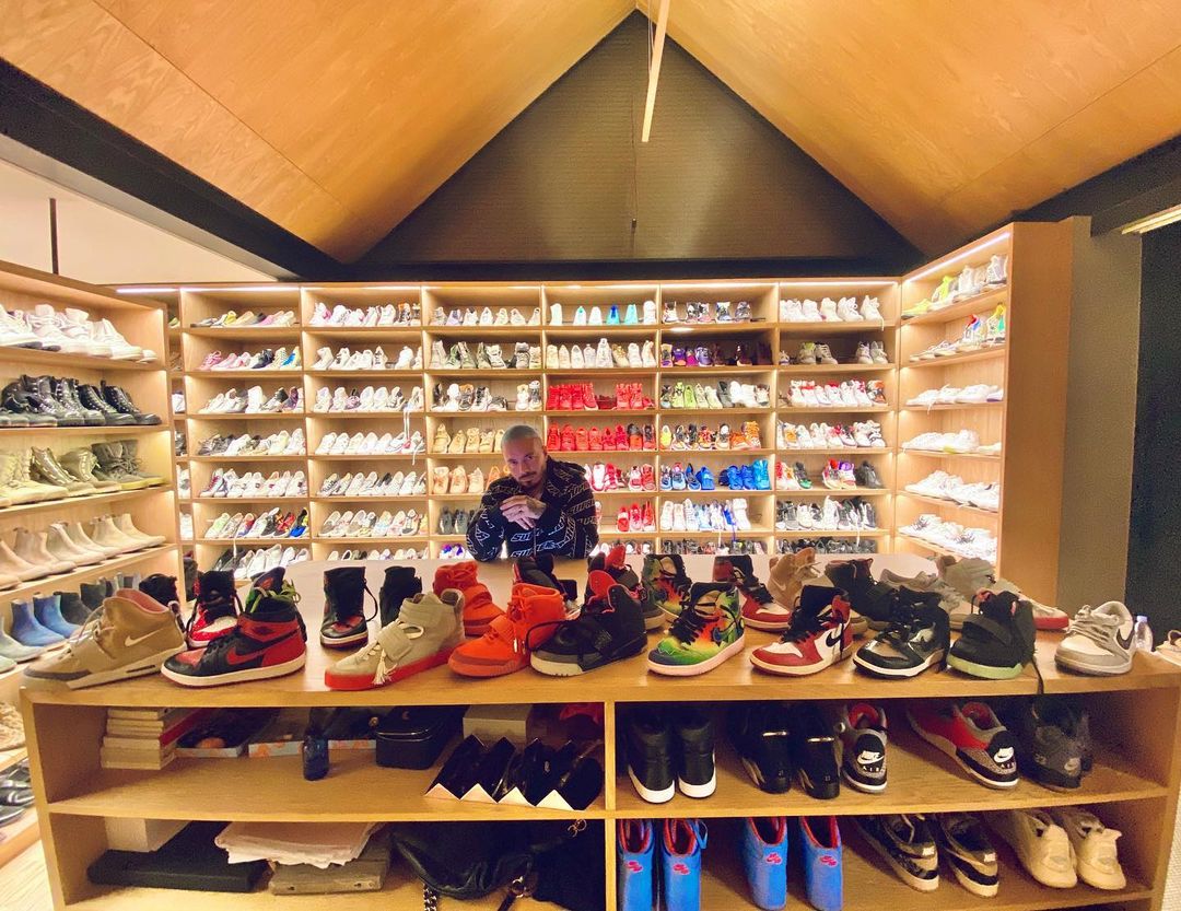 在他的球鞋藏品中,最多的是 Air Yeezy 系列,单 Air Yeezy 2 “October” 就有一竖列。
