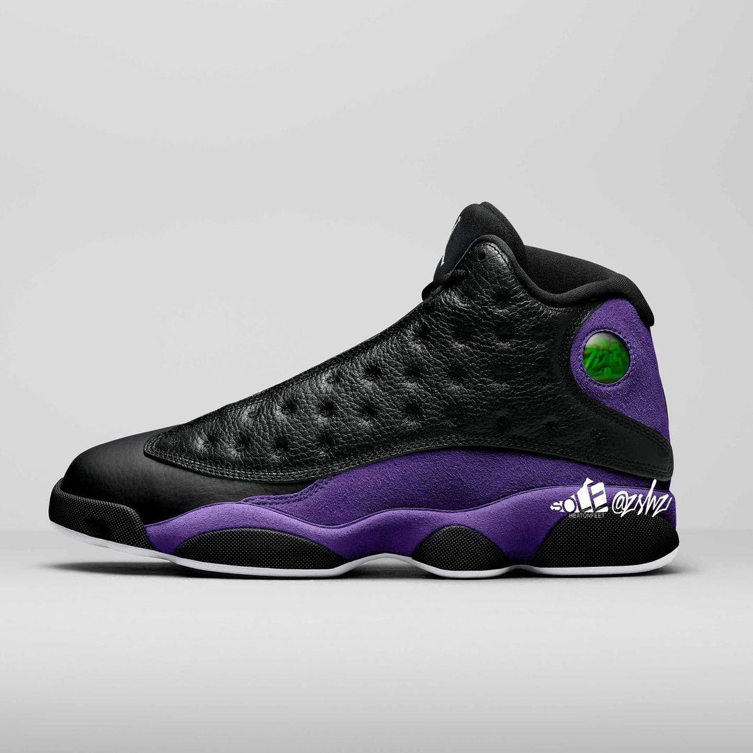 而近日海外球鞋爆料账号 zsneakerheadz 还为我们带来一款黑紫配色 Air Jordan 13 的效果图。