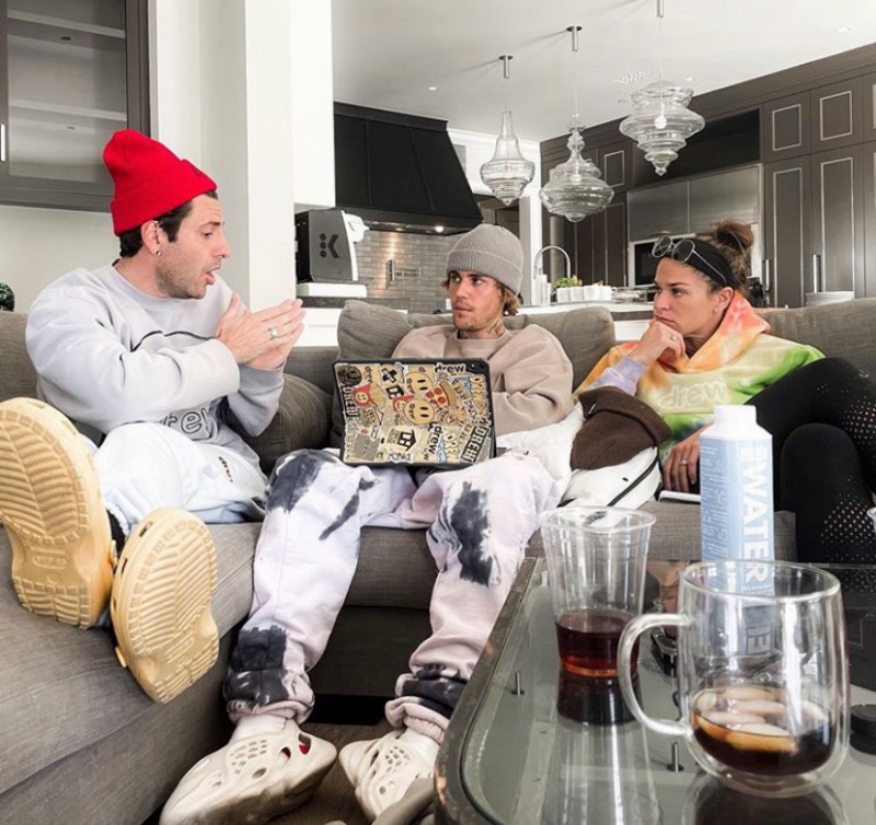 但大洋彼岸的 Justin Bieber 却依旧选择侃爷多次上脚的 Yeezy 洞洞鞋。