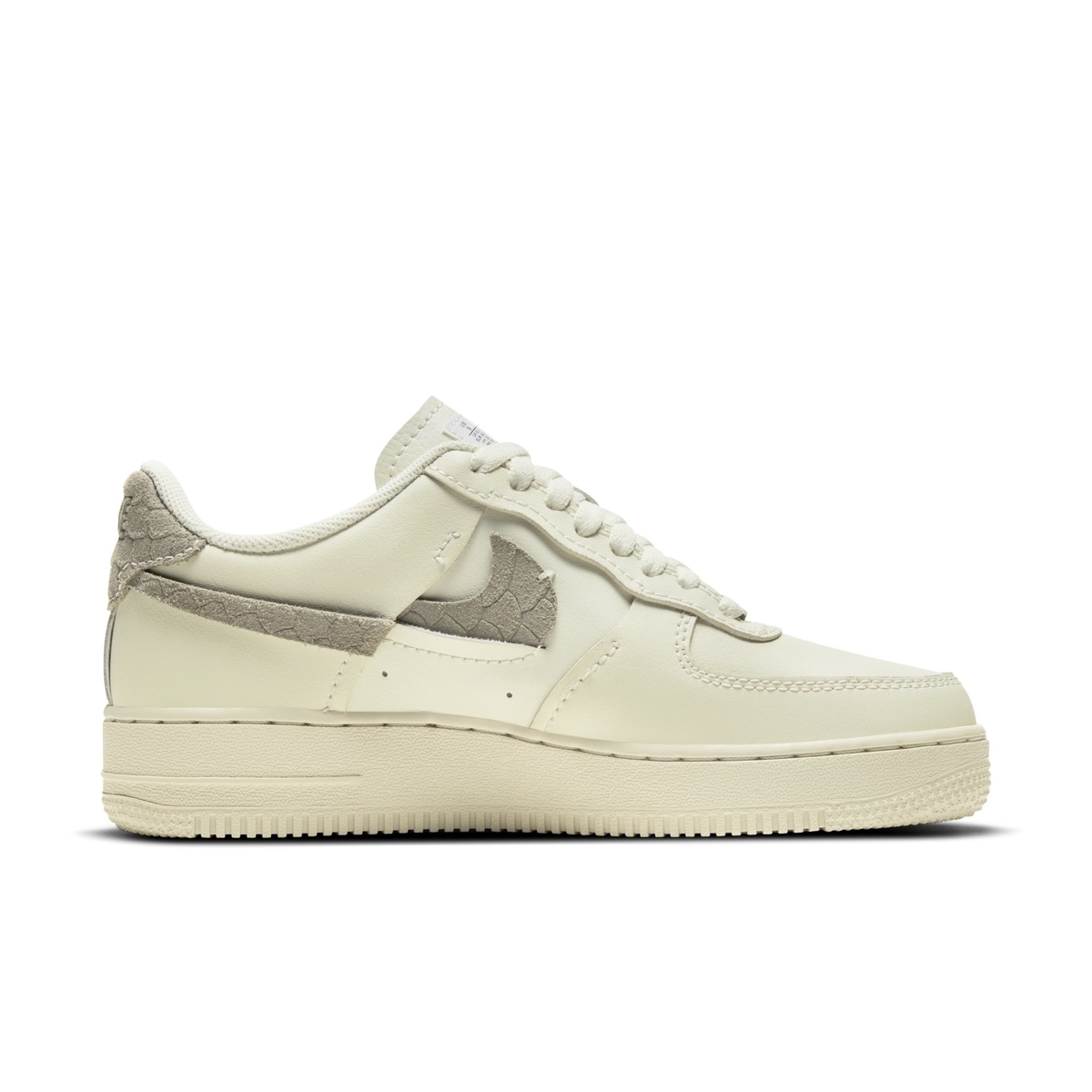 今早海外曝光了一款颜值非常高的 Nike Air Force 1 LXX WMNS 款式。 以做旧色泽的灰棕色为基调,侧身仿蛇鳞材质 Swoosh Logo 断钩装饰,整体气质非常高级,在当下季节上脚搭配效果会很不错。 目前暂无明确发售信息释出,感兴趣的小伙伴可以密切关注。