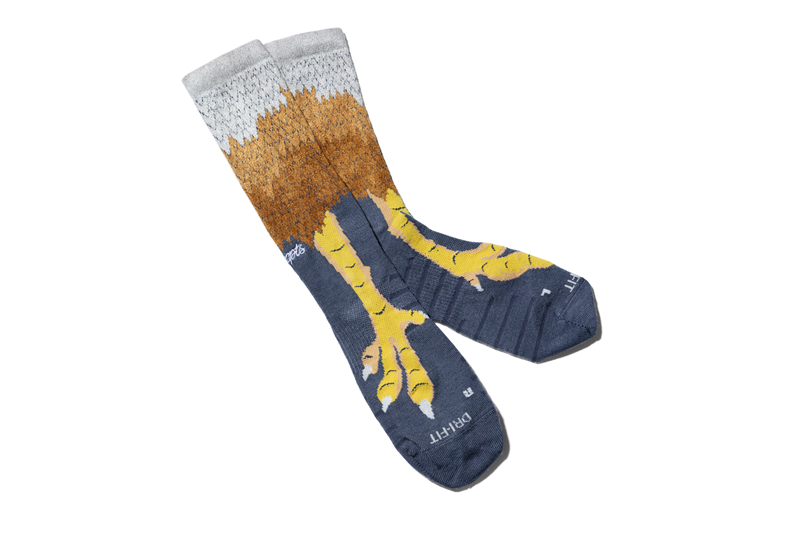 除了鞋款本身之外,整个套装内配备了 “鸡脚” 主题的袜子,并附上感恩节烤火鸡用的包装纸。