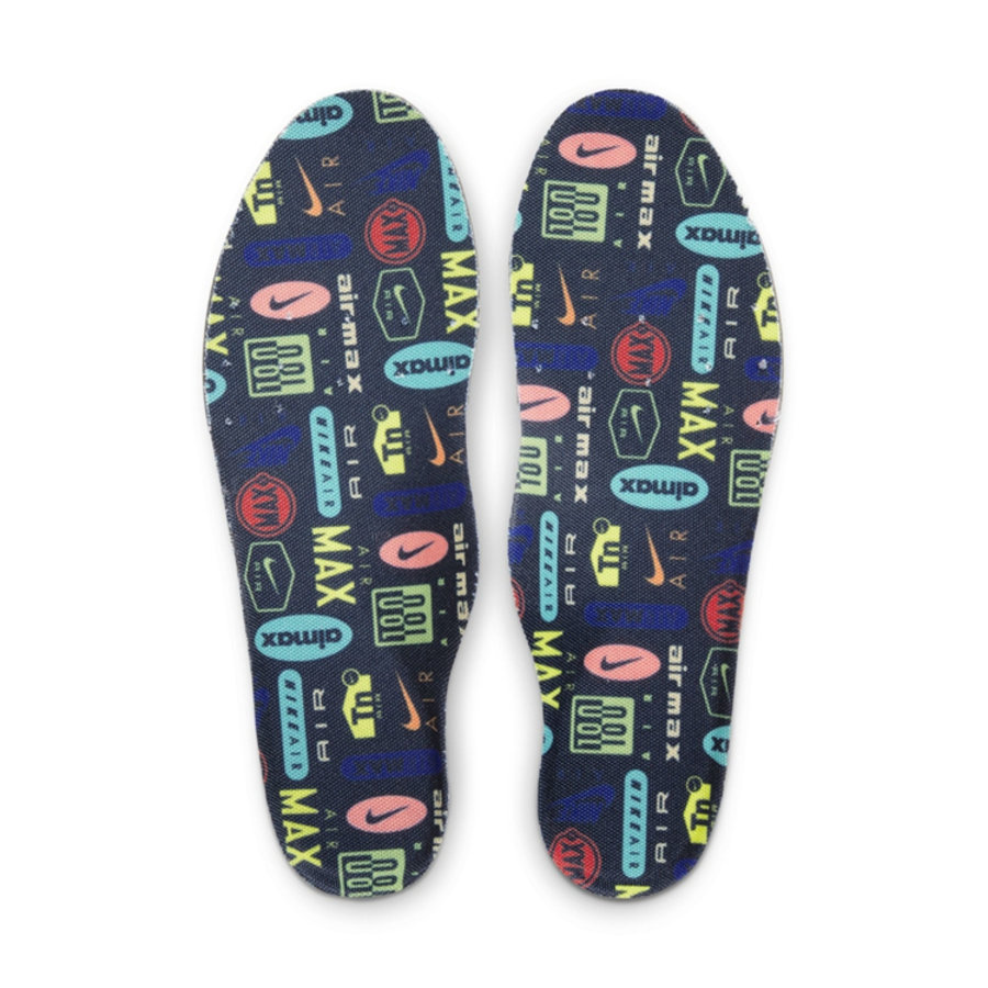 一大亮点则是鞋垫处的满印图案,Nike、Air Max、Swoosh 等各种 Logo 字样,极为用心。