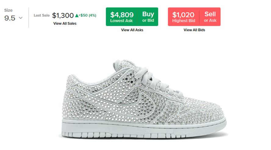 目前两款配色的市价均在 $1250 美元左右,更有部分女码甚至达到了 $2500 美元的高价。