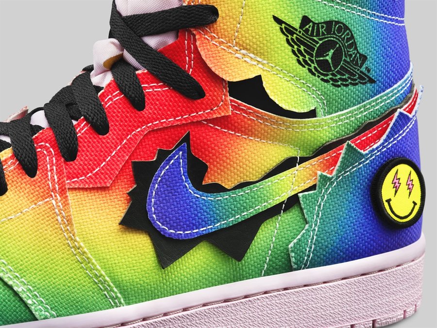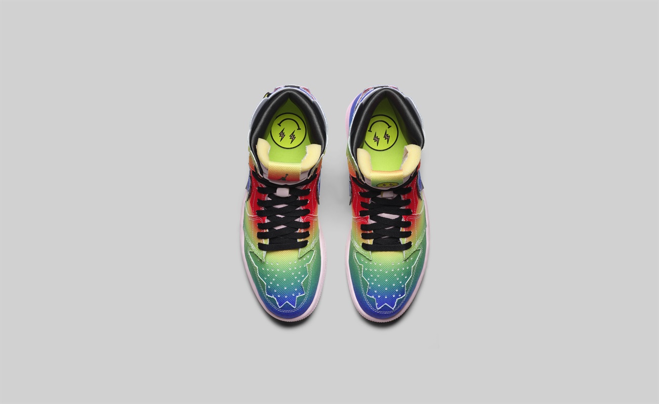 鞋舌一边以 J Balvin 招牌的「闪电笑脸」装饰,后跟相同样式徽章装饰,鞋垫暗藏笑脸呼应。