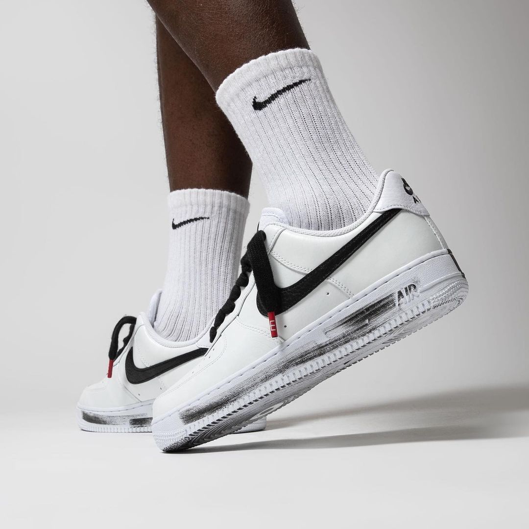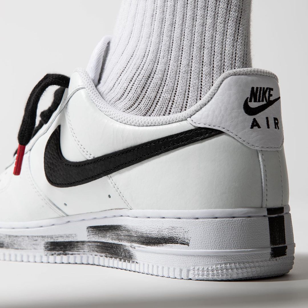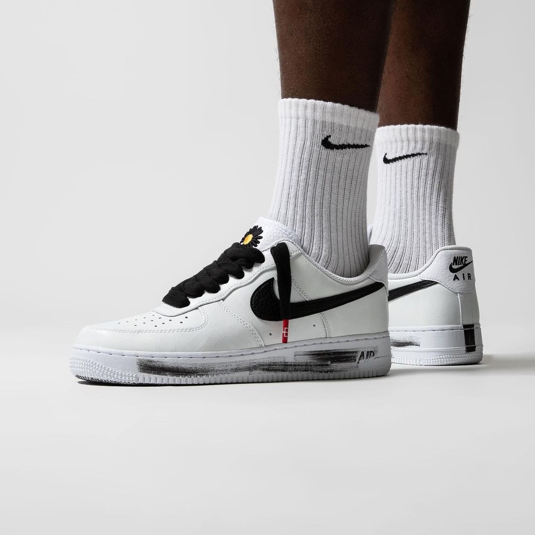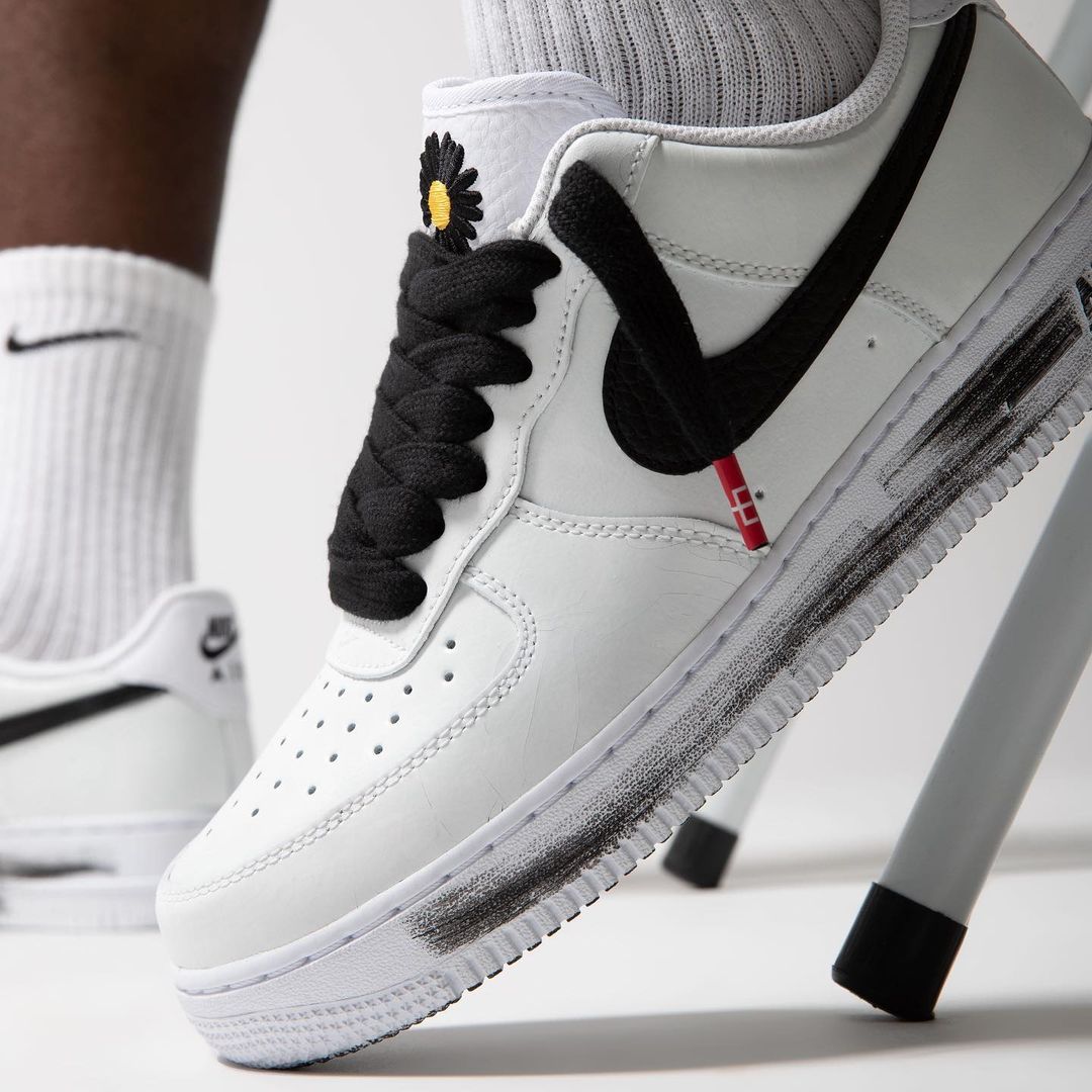 这双白色的 PMO x Nike Air Force 1 “Paranoise” 承袭了 1.0 版本的「撕撕乐」玩法,同时保留了笔刷、雏菊等细节元素。
