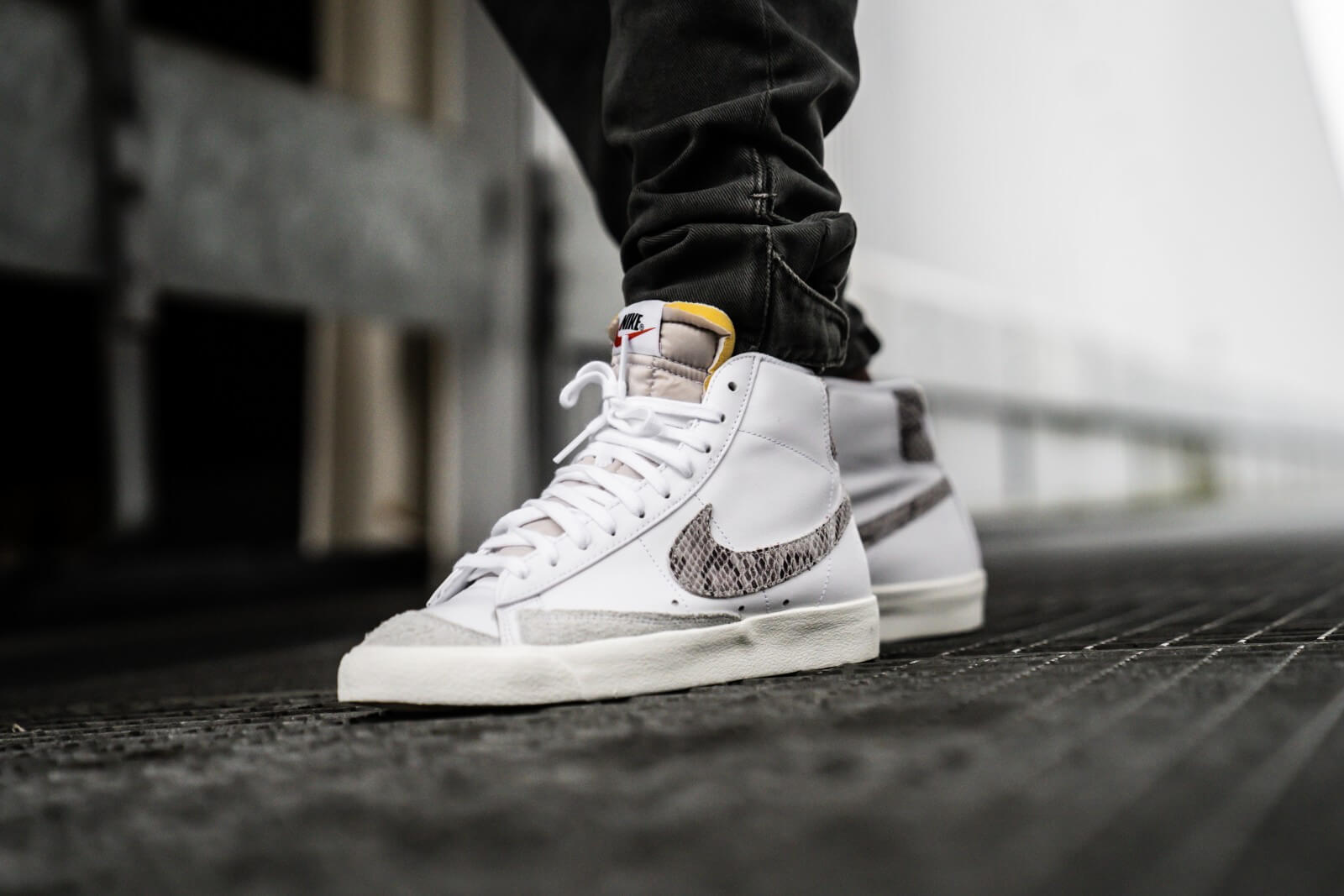 「蛇纹」Nike Blazer Mid 绝对是「宝藏球鞋」之一,白色皮革鞋身,麂皮鞋头补强,复古气质呼之欲出。重要的是 Swoosh Logo 以及后跟蛇纹点缀,男生上脚够酷,女生上脚够野!