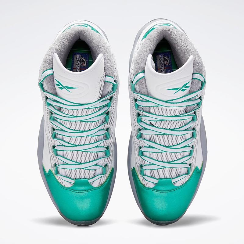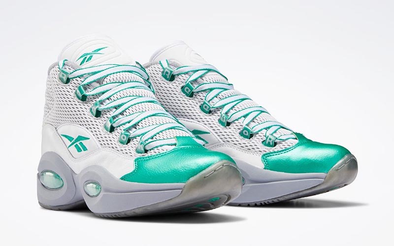 本次 Question Mid 以城市橄榄球队「费城老鹰」的球衣配色为灵感,鞋面整体辅以白、绿拼接呈现,内衬加入植绒包覆。
