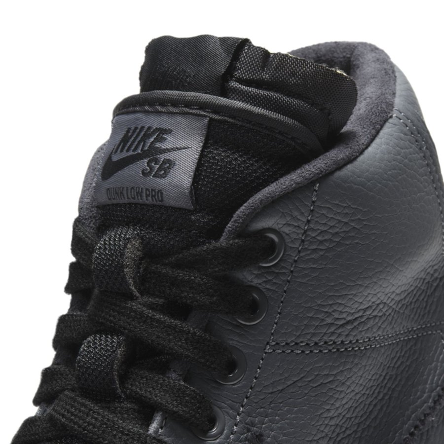 整双鞋采用灰色荔枝纹皮革打造鞋身主体,鞋都部分点缀黑色牛巴革皮质,用料十分考究。